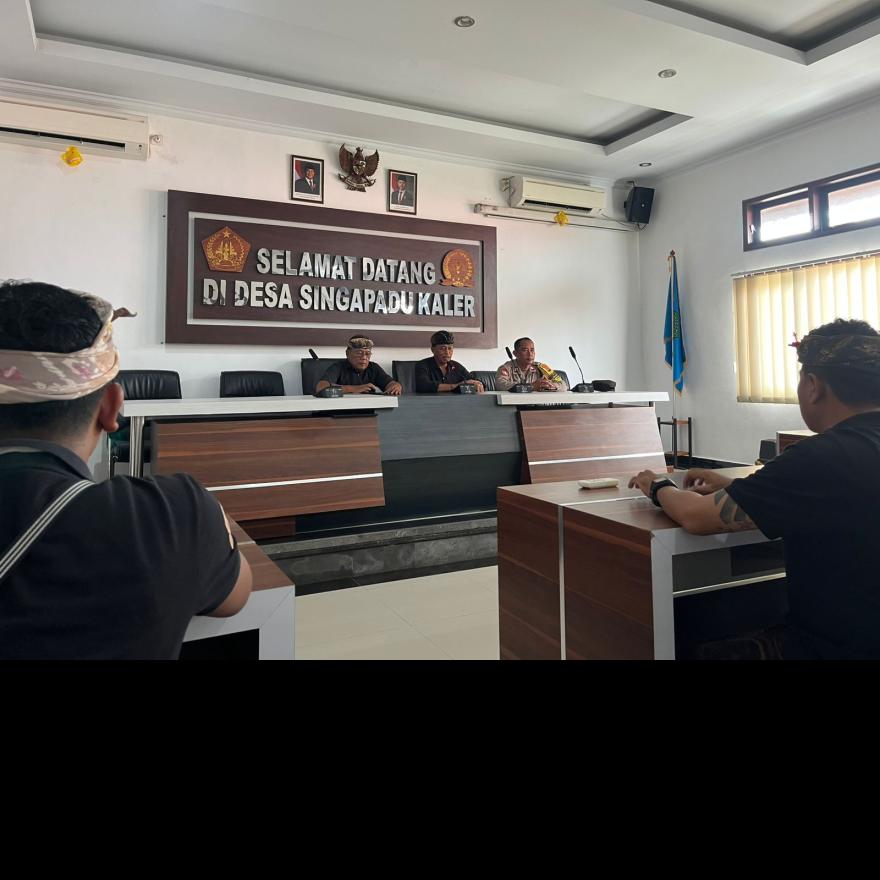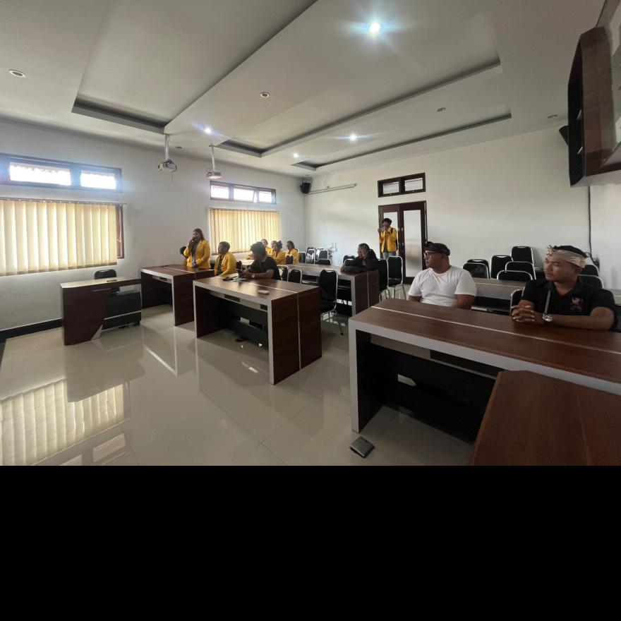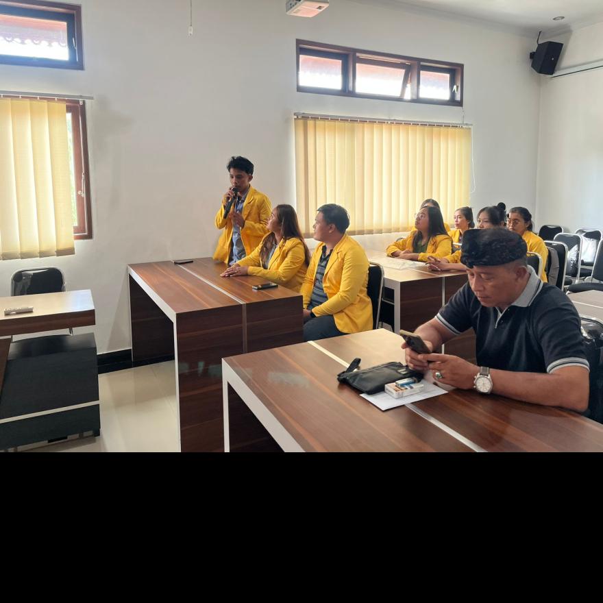 Pertemuan mahasiswa UNHI Dps dlm rangka program project Desa dengan Perangkat Desa BPD, Bhabinkantibmas, Babinsa .